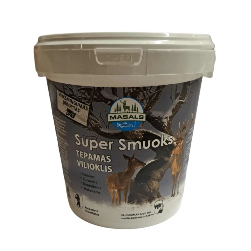 SuperSmuoks ir spēcīga aromāta šķidrais pievilinātājs, kas īpaši izstrādāts, lai piesaistītu briežus un stirnas. Unikālā ābola, kukurūzas un ozolzīļu aromātu kombinācija efektīvi vilina dzīvniekus uz medību teritoriju, nodrošinot veiksmīgu medību pieredzi.