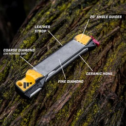 Field Sharpener 2.2.1 asināmais ar norādītiem leņķiem kā arī tā 5. darbības pozīcijām nodrošina jums iespēju pilnvērtīgi uzasināt jebkuru nazi vai darba rīku.